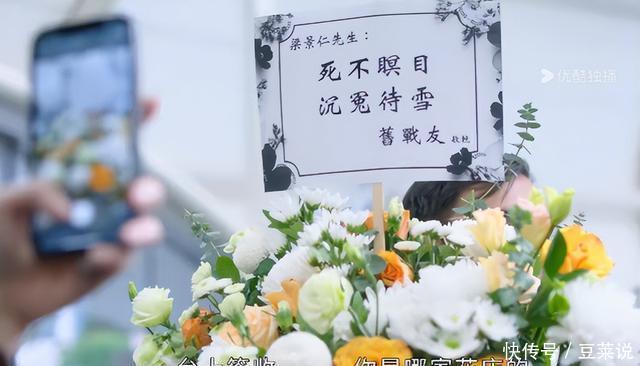 然而,意外还是来了。 在亲友轮流上前悼念的环节,忽然一束花被搬到了现场,上面还插了一张纸—— “死不瞑目,沉冤昭雪(旧战友)。”