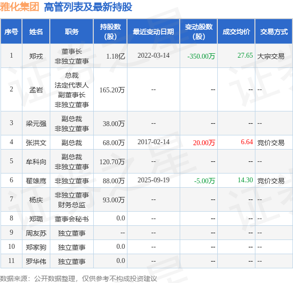 雅化集团的高管列表及最新持股情况如下: